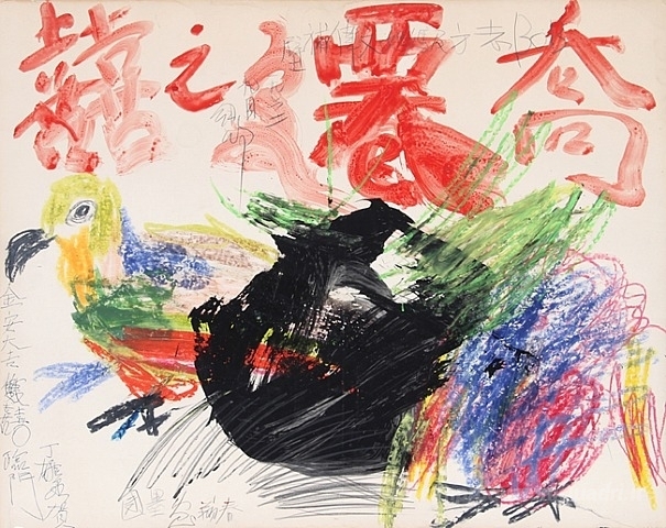Ti offriamo una riproduzione artigianale su tela dell'opera famosa 'Astratto con Bird' di Walasse Ting, dal Museo delle Riproduzioni.