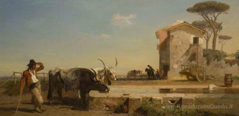 Ti offriamo una riproduzione artigianale su tela dell'opera famosa 'Bestiame in un Alcol posto nella campagna, Roma' di George Hemming Mason, dal Museo delle Riproduzioni.