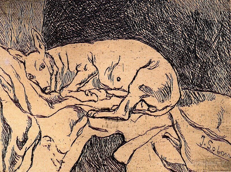 Ti offriamo una riproduzione artigianale su tela dell'opera famosa 'Cane del pittore' di Jose Gutierrez Solana, dal Museo delle Riproduzioni.