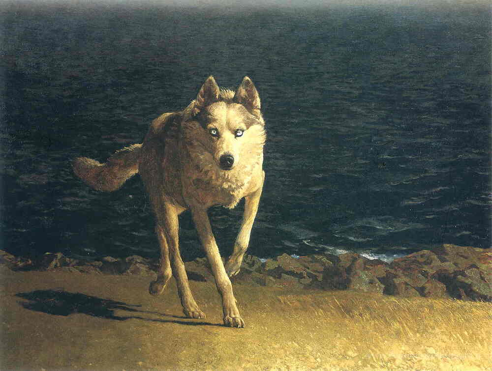 Ti offriamo una riproduzione artigianale su tela dell'opera famosa 'Cane lupo' di Jamie Wyeth, dal Museo delle Riproduzioni.