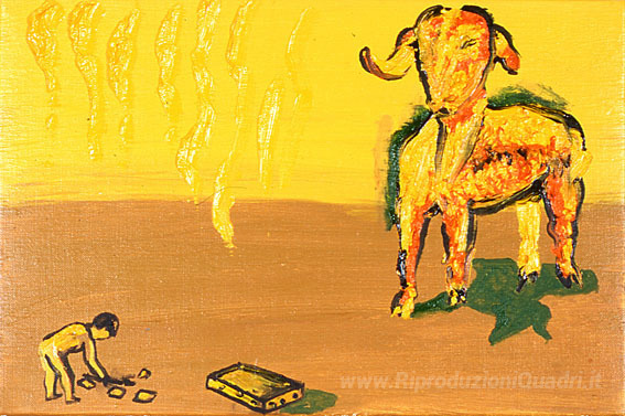 Ti offriamo una riproduzione artigianale su tela dell'opera famosa 'Carne e vestito' di Enzo Cucchi, dal Museo delle Riproduzioni.