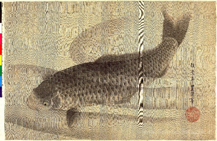 Ti offriamo una riproduzione artigianale su tela dell'opera famosa 'Carpe grigio in acqua' di Utagawa Toyokuni II, dal Museo delle Riproduzioni.