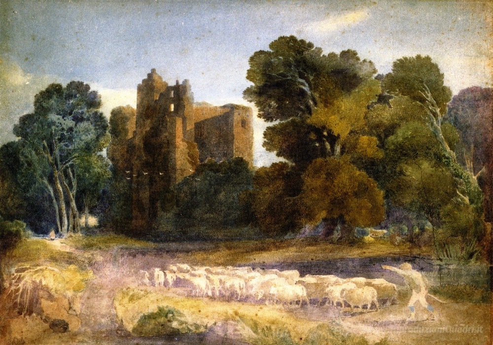 Ti offriamo una riproduzione artigianale su tela dell'opera famosa 'Castello di Kenilworth' di David Cox, dal Museo delle Riproduzioni.
