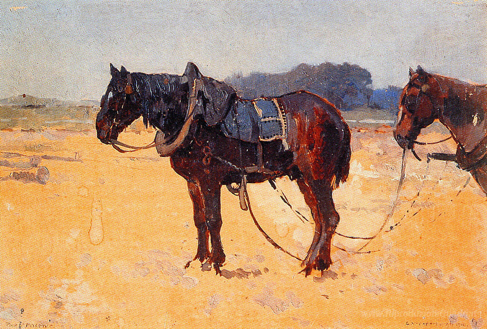 Ti offriamo una riproduzione artigianale su tela dell'opera famosa 'Cavalli di lavoro' di Cornelis Vreedenburgh, dal Museo delle Riproduzioni.