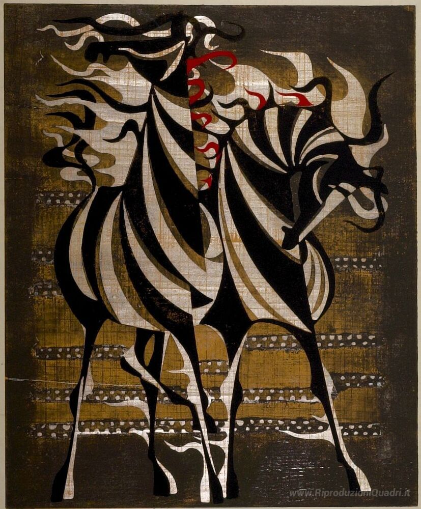 Ti offriamo una riproduzione artigianale su tela dell'opera famosa 'Cavalli nel Pomeriggio' di Tadashi Nakayama, dal Museo delle Riproduzioni.