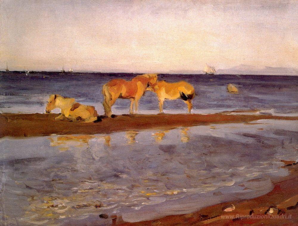 Ti offriamo una riproduzione artigianale su tela dell'opera famosa 'Cavalli su un puntello' di Valentin Serov, dal Museo delle Riproduzioni.