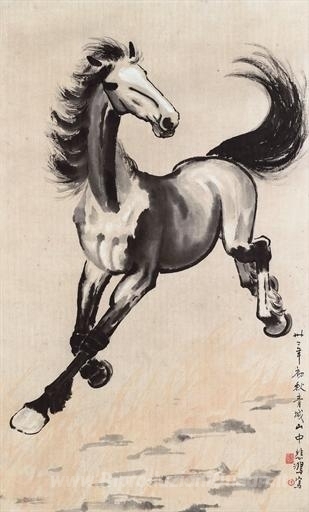 Ti offriamo una riproduzione artigianale su tela dell'opera famosa 'Cavallo galoppante' di Xu Beihong, dal Museo delle Riproduzioni.