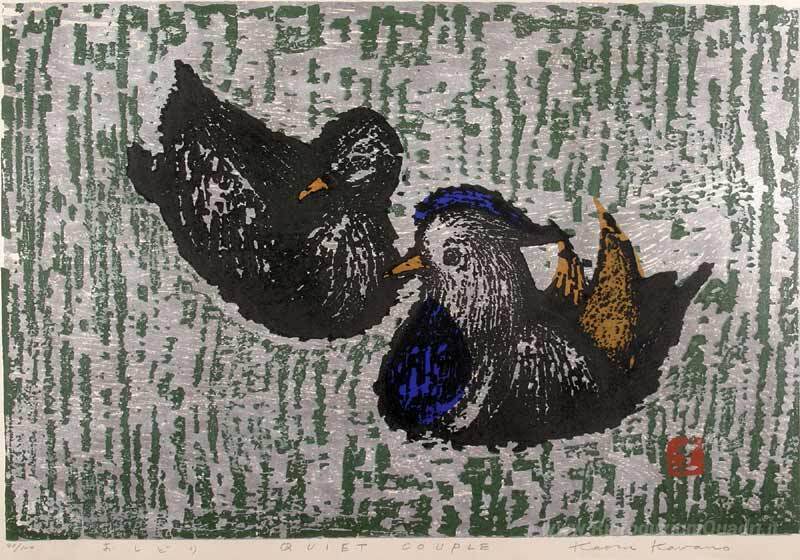 Ti offriamo una riproduzione artigianale su tela dell'opera famosa 'Coppia tranquilla' di Kaoru Kawano, dal Museo delle Riproduzioni.