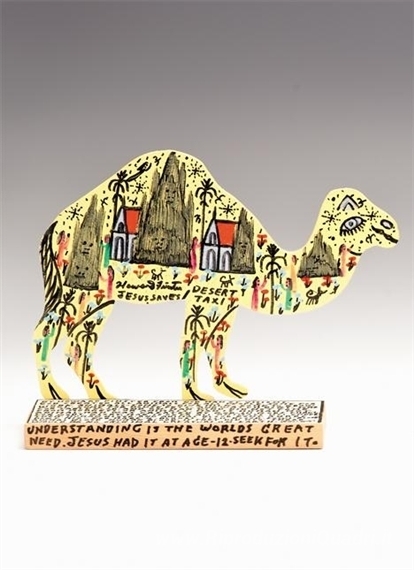 Ti offriamo una riproduzione artigianale su tela dell'opera famosa 'Deserto taxi' di Howard Finster, dal Museo delle Riproduzioni.