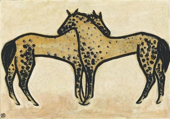 Ti offriamo una riproduzione artigianale su tela dell'opera famosa 'Due Cavalli Spotted' di Sanyu, dal Museo delle Riproduzioni.