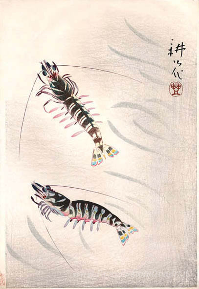Ti offriamo una riproduzione artigianale su tela dell'opera famosa 'Due Gamberi' di Yamamura Toyonari, dal Museo delle Riproduzioni.