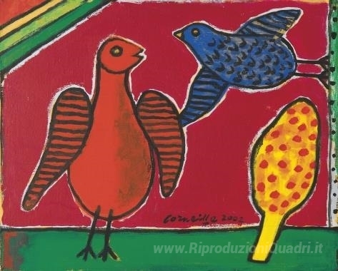 Ti offriamo una riproduzione artigianale su tela dell'opera famosa 'Due uccelli' di Corneille, dal Museo delle Riproduzioni.