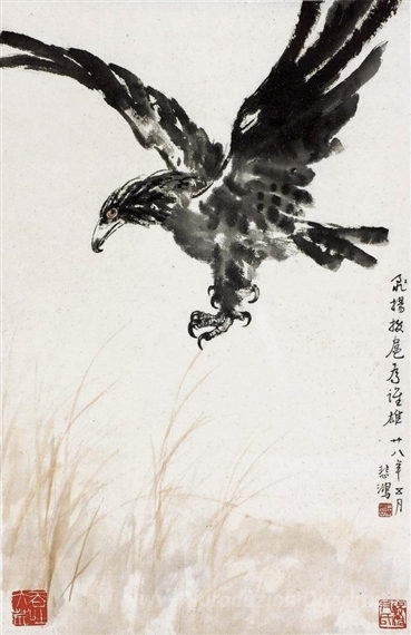 Ti offriamo una riproduzione artigianale su tela dell'opera famosa 'Falco' di Xu Beihong, dal Museo delle Riproduzioni.