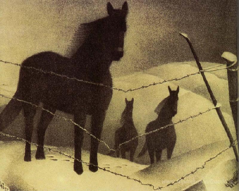 Ti offriamo una riproduzione artigianale su tela dell'opera famosa 'Febbraio' di Grant Wood, dal Museo delle Riproduzioni.