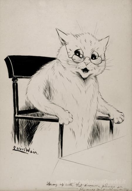 Benvenuti nella nostra esclusiva collezione di opere a olio, dove ogni dipinto racconta una storia unica, esprimendo la maestria degli artisti italiani. Oggi vi presentiamo FRETTA CON CHE PREGA DI CENA O IL COMUNE MICE scappa di Louis Wain, un'opera che cattura l'essenza della vivacità e dell'eleganza del mondo animale. Louis Wain, noto per le sue rappresentazioni di gatti in scenari umoristici, unisce una tecnica raffinata a uno stile freschissimo, rendendo ogni dipinto un invito a esplorare l'immaginazione.