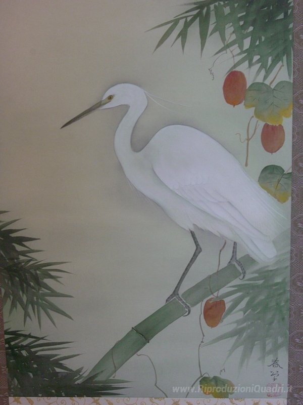 Ti offriamo una riproduzione artigianale su tela dell'opera famosa 'Garzetta Scroll' di Hishida Shunso, dal Museo delle Riproduzioni.