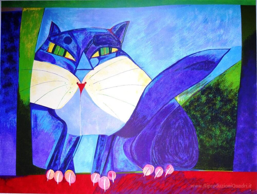 Ti offriamo una riproduzione artigianale su tela dell'opera famosa 'Gatto' di Aldemir Martins, dal Museo delle Riproduzioni.