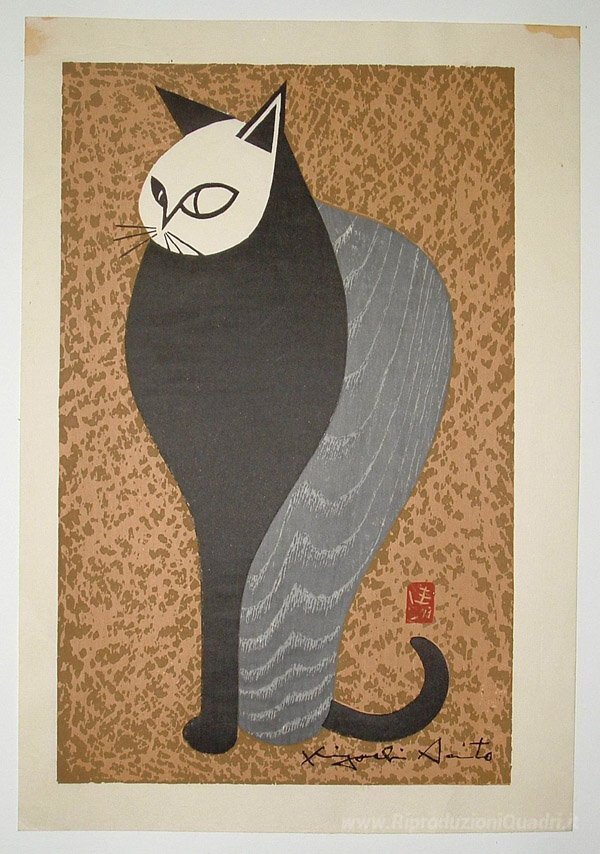 Ti offriamo una riproduzione artigianale su tela dell'opera famosa 'Gatto' di Kiyoshi Saito, dal Museo delle Riproduzioni.