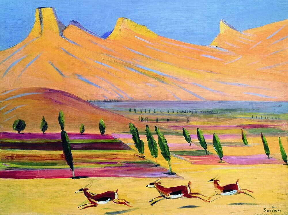 Ti offriamo una riproduzione artigianale su tela dell'opera famosa 'Gazzelle' di Martiros Saryan, dal Museo delle Riproduzioni.