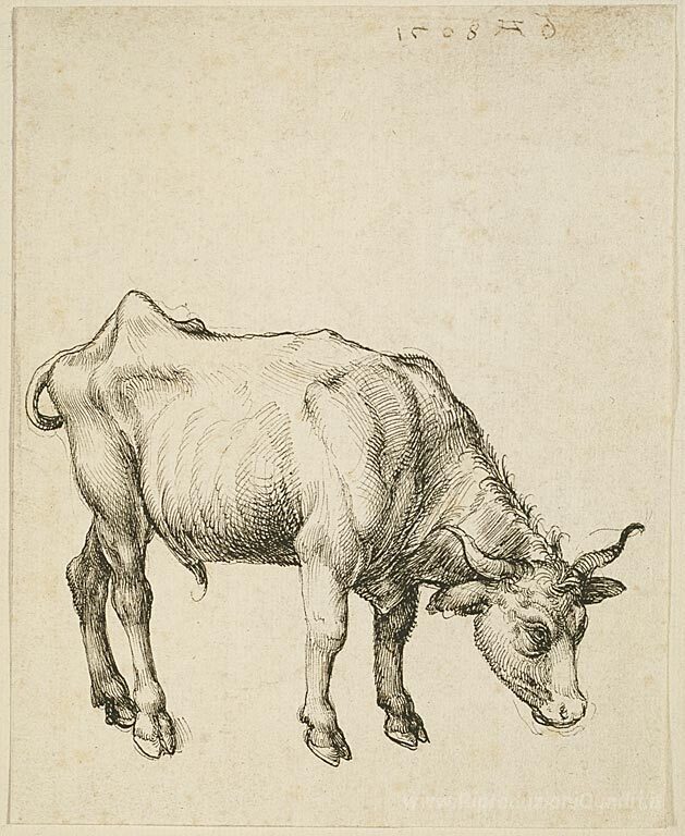 Ti offriamo una riproduzione artigianale su tela dell'opera famosa 'Giovane Steer' di Albrecht Durer, dal Museo delle Riproduzioni.