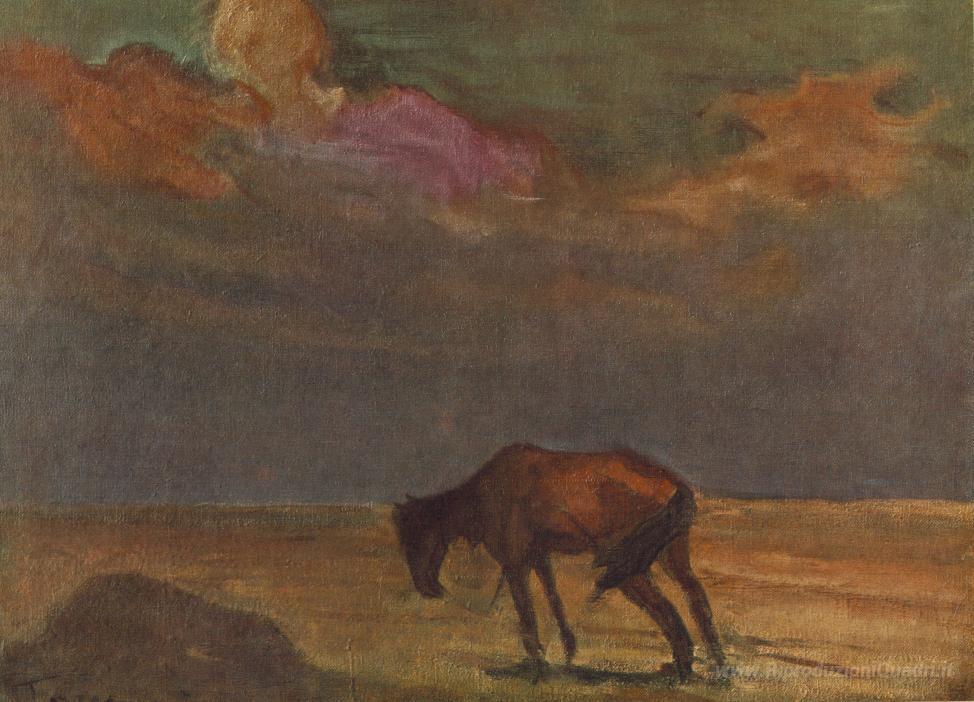 Ti offriamo una riproduzione artigianale su tela dell'opera famosa 'Gloomy destino ungherese' di Janos Tornyai, dal Museo delle Riproduzioni.