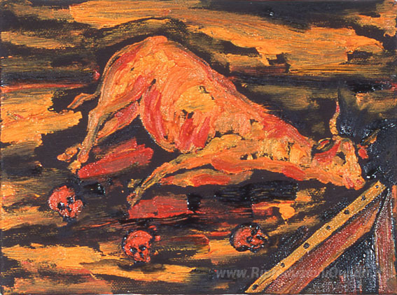 Ti offriamo una riproduzione artigianale su tela dell'opera famosa 'Goccia di terra' di Enzo Cucchi, dal Museo delle Riproduzioni.