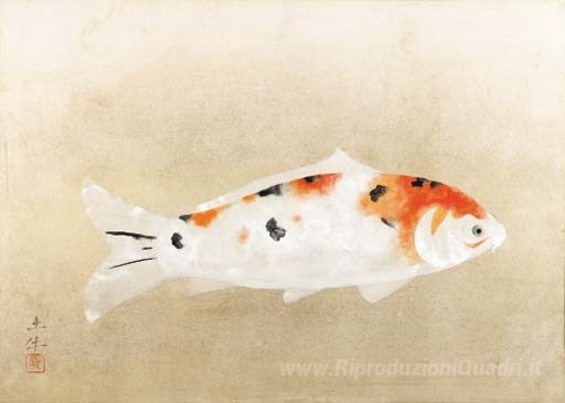 Ti offriamo una riproduzione artigianale su tela dell'opera famosa 'Higoi (Red carpa)' di Togyu Okumura, dal Museo delle Riproduzioni.