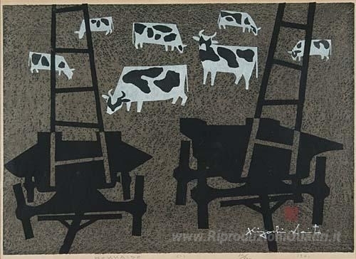 Ti offriamo una riproduzione artigianale su tela dell'opera famosa 'Hokkaido (C)' di Kiyoshi Saito, dal Museo delle Riproduzioni.