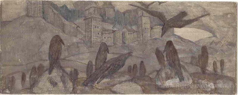 Ti offriamo una riproduzione artigianale su tela dell'opera famosa 'Infausto' di Nicholas Roerich, dal Museo delle Riproduzioni.
