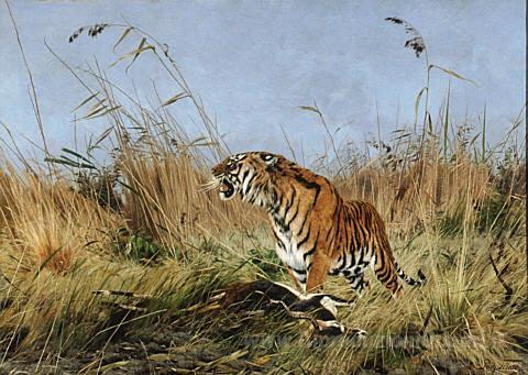 Ti offriamo una riproduzione artigianale su tela dell'opera famosa 'La tigre' di Richard Friese, dal Museo delle Riproduzioni.