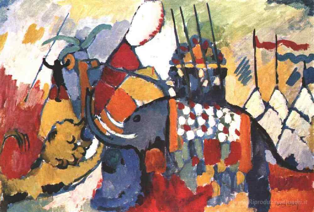 Ti offriamo una riproduzione artigianale su tela dell'opera famosa 'L'elefante' di Wassily Kandinsky, dal Museo delle Riproduzioni.