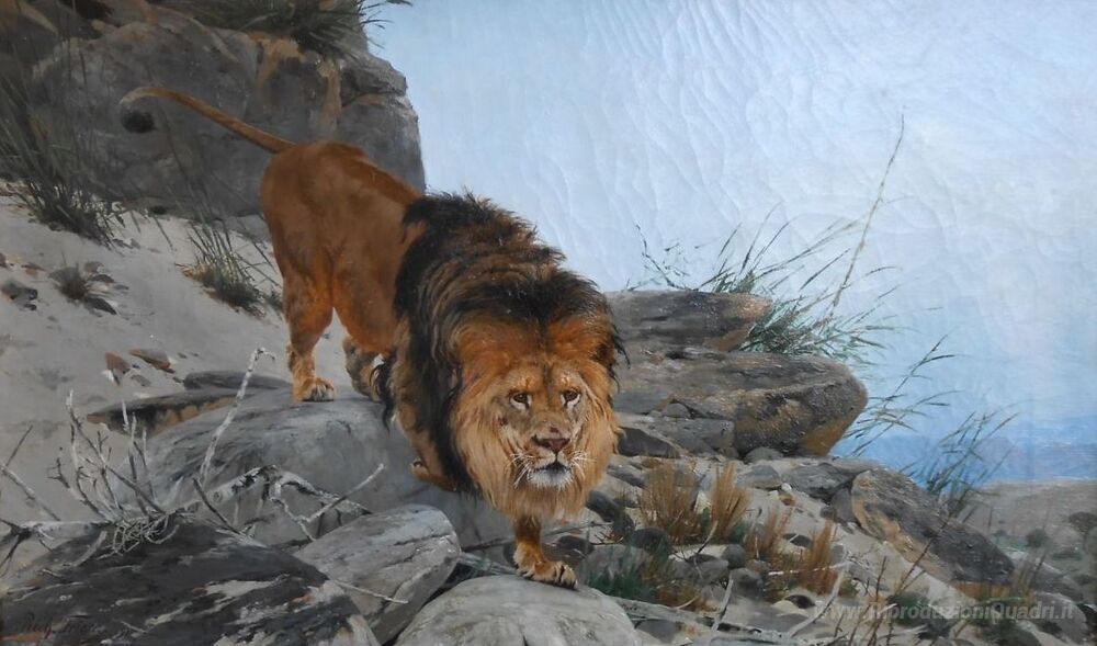 Ti offriamo una riproduzione artigianale su tela dell'opera famosa 'Leone' di Richard Friese, dal Museo delle Riproduzioni.