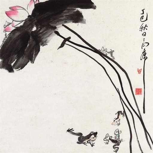 Ti offriamo una riproduzione artigianale su tela dell'opera famosa 'Lotus e rane' di Ding Yanyong, dal Museo delle Riproduzioni.