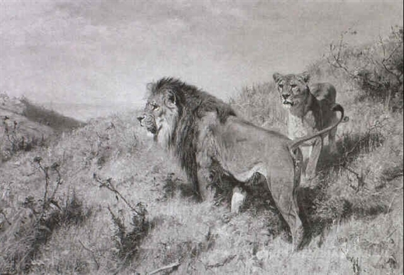Ti offriamo una riproduzione artigianale su tela dell'opera famosa 'L?wenpaar in der Savanne' di Richard Friese, dal Museo delle Riproduzioni.