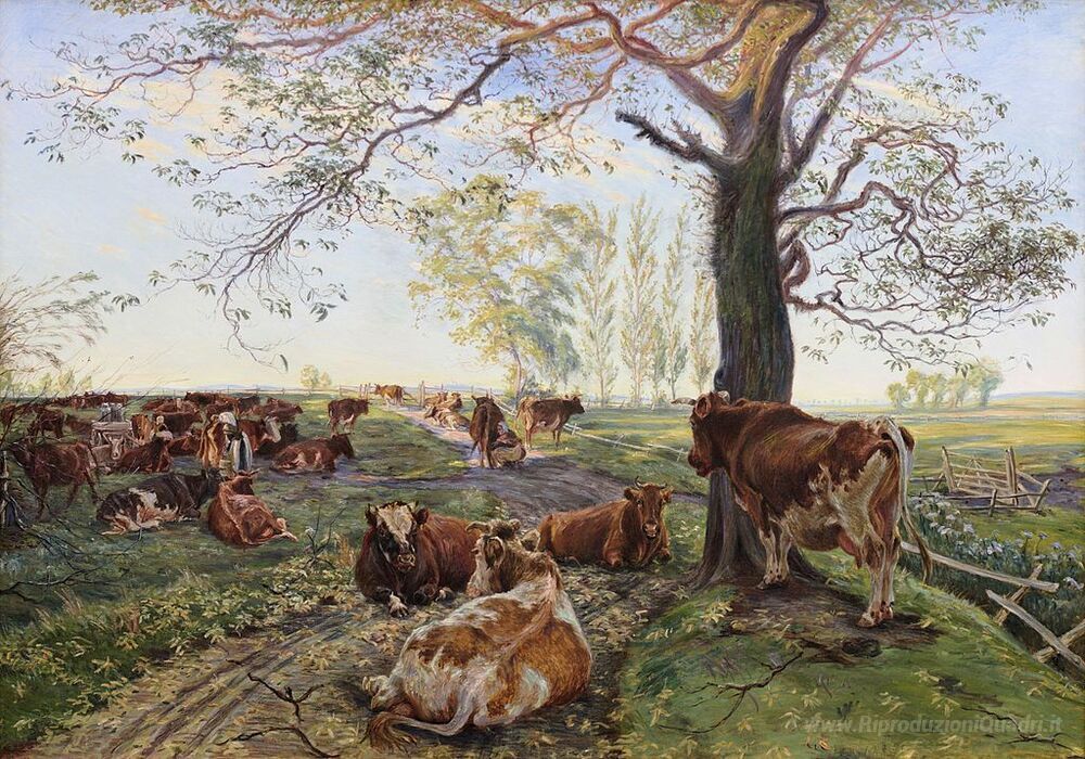 Scoprite l'incantevole opera Malkeplads ved Dyrehaveg?rd, un capolavoro del maestro danese Theodor Philipsen. Nato nel 1840, Philipsen è noto per la sua abilità nell'imprimere vita e movimento ai paesaggi e alle scene quotidiane, tracciando un legame profondo tra la naturalità del mondo esterno e la sensibilità dell'osservatore. Con una palette ricca e vibrante, questo dipinto cattura l'essenza di un mercato rurale, trasportando lo spettatore in un'epoca e in un luogo ricchi di storia.