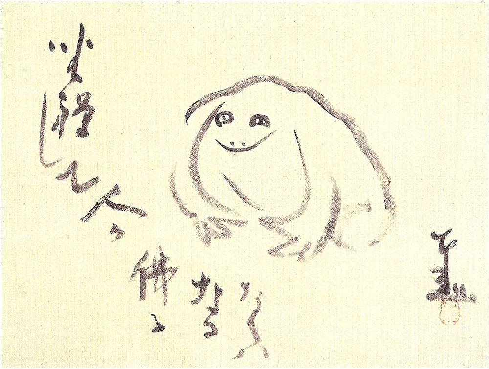 Ti offriamo una riproduzione artigianale su tela dell'opera famosa 'Meditare Frog' di Sengai, dal Museo delle Riproduzioni.