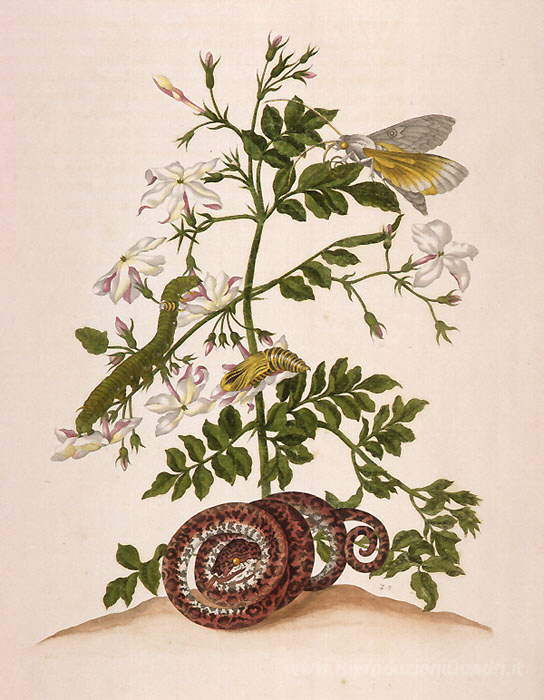Immergiti nel mondo affascinante della natura con l'opera Metamorphosis Insectorum Surinamensium, realizzata dalla talentuosa artista e naturalista Maria Sibylla Merian. Nata nel 1647, Merian è stata pioniera nello studio degli insetti, combinando arte e scienza in modo innovativo. Le sue opere, frutto di un'attenta osservazione della flora e fauna del Suriname, esprimono la meraviglia e la complessità della metamorfosi degli insetti, offrendo uno scorcio straordinario su un ecosistema ricco di vita.
