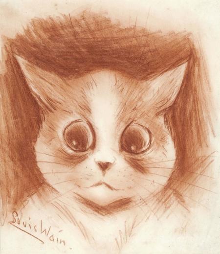 Ti offriamo una riproduzione artigianale su tela dell'opera famosa 'MI CHIEDO' di Louis Wain, dal Museo delle Riproduzioni.