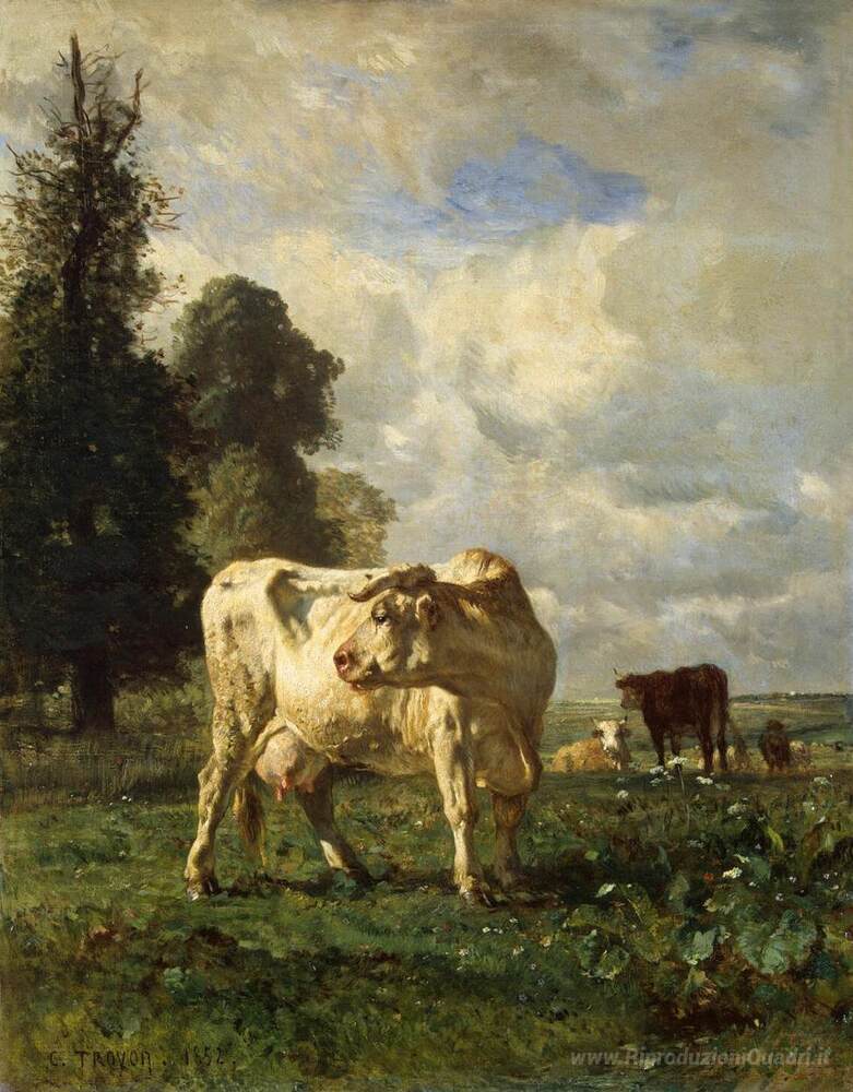 Ti offriamo una riproduzione artigianale su tela dell'opera famosa 'Mucche in campo' di Constant Troyon, dal Museo delle Riproduzioni.