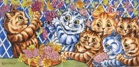 Ti offriamo una riproduzione artigianale su tela dell'opera famosa 'NELLA VIGNA' di Louis Wain, dal Museo delle Riproduzioni.