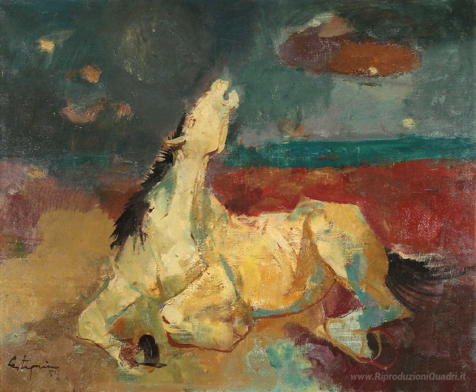 Ti offriamo una riproduzione artigianale su tela dell'opera famosa 'Noturno' di Juan Carlos Castagnino, dal Museo delle Riproduzioni.