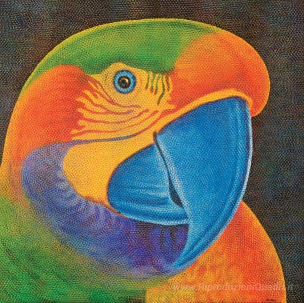 Ti offriamo una riproduzione artigianale su tela dell'opera famosa 'Papagália' di Claudio Tozzi, dal Museo delle Riproduzioni.
