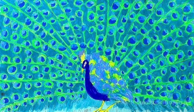 Ti offriamo una riproduzione artigianale su tela dell'opera famosa 'Peacock II' di Walasse Ting, dal Museo delle Riproduzioni.