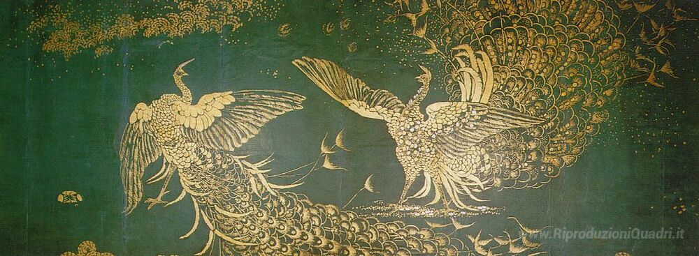 Ti offriamo una riproduzione artigianale su tela dell'opera famosa 'Peacock Lotta' di James McNeill Whistler, dal Museo delle Riproduzioni.
