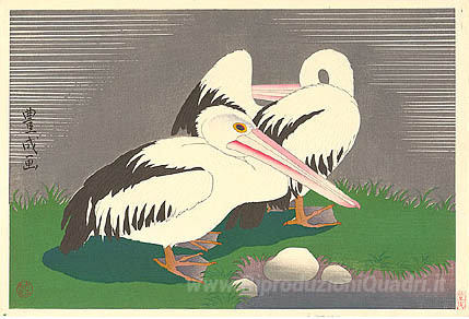 Ti offriamo una riproduzione artigianale su tela dell'opera famosa 'Pellicani' di Yamamura Toyonari, dal Museo delle Riproduzioni.