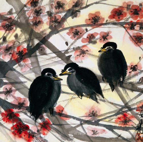 Ti offriamo una riproduzione artigianale su tela dell'opera famosa 'Plum Tree e uccelli' di Lin Fengmian, dal Museo delle Riproduzioni.