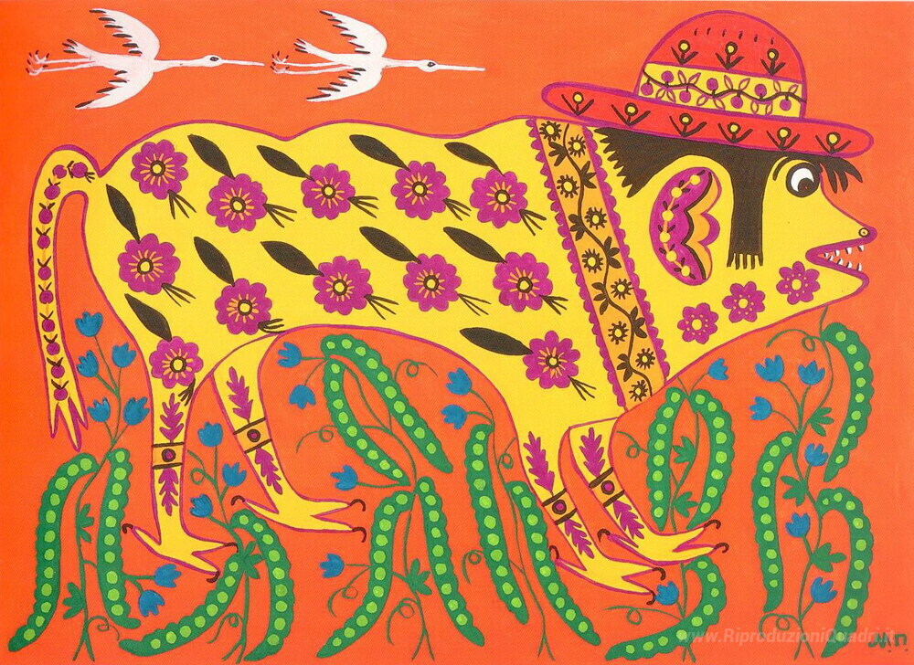 Scopri la magia dell'arte italiana con il dipinto Questa bestia è venuto in esecuzione dalla collina della talentuosa artista Maria Primachenko. Nata in Ucraina, Primachenko è nota per le sue opere vivaci e straordinarie che uniscono tradizione e innovazione, portando alla luce un mondo ricco di simbolismo e colori intensi. Il suo stile, caratterizzato da forme stilizzate e motivi ispirati alla natura, trasmette un senso di meraviglia e incanto.