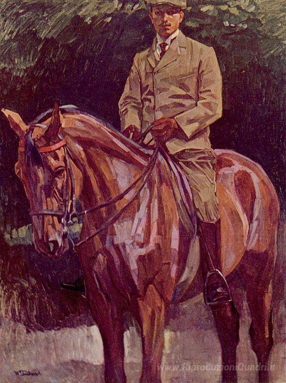 Ti offriamo una riproduzione artigianale su tela dell'opera famosa 'Reiterportr?t' di Wilhelm Trubner, dal Museo delle Riproduzioni.