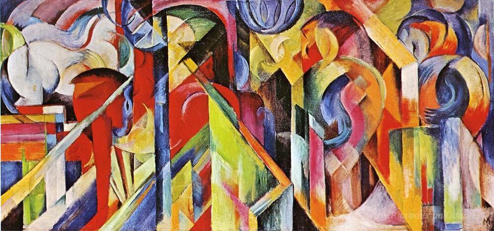 Ti offriamo una riproduzione artigianale su tela dell'opera famosa 'Scuderie' di Franz Marc, dal Museo delle Riproduzioni.