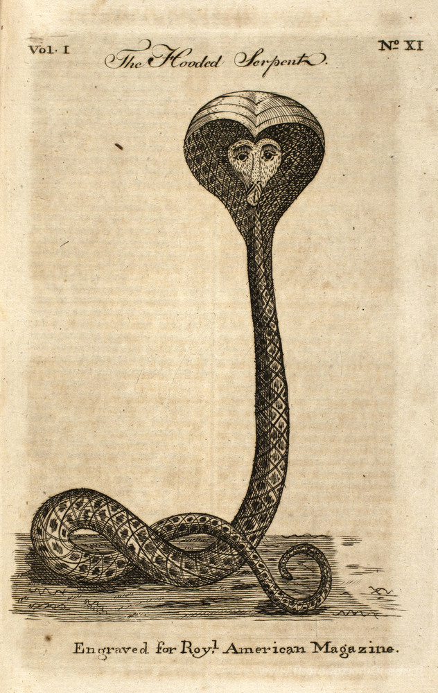 Ti offriamo una riproduzione artigianale su tela dell'opera famosa 'Serpente con cappuccio' di Paul Revere, dal Museo delle Riproduzioni.
